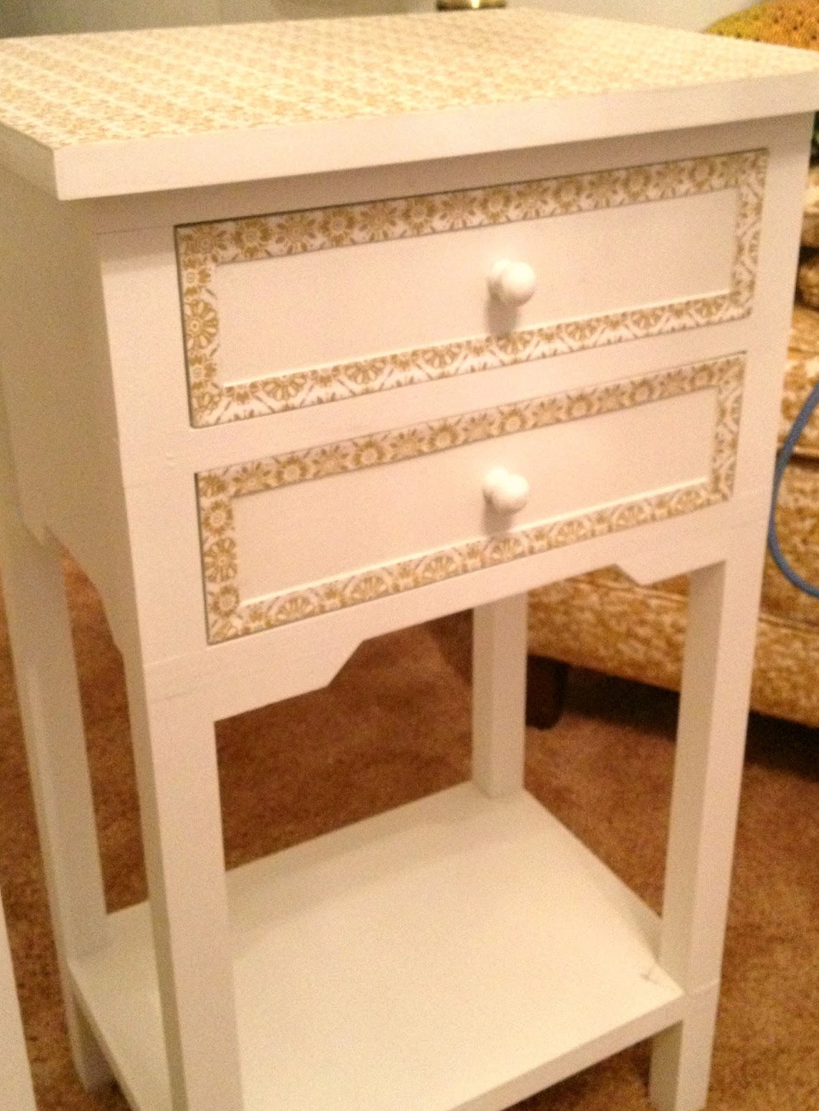 My first chance came when my mother purchased a pair of fairly plain but size and color appropriate night stands for one of the bedrooms. You saw them in the previous This New House post about headboards in their final state.